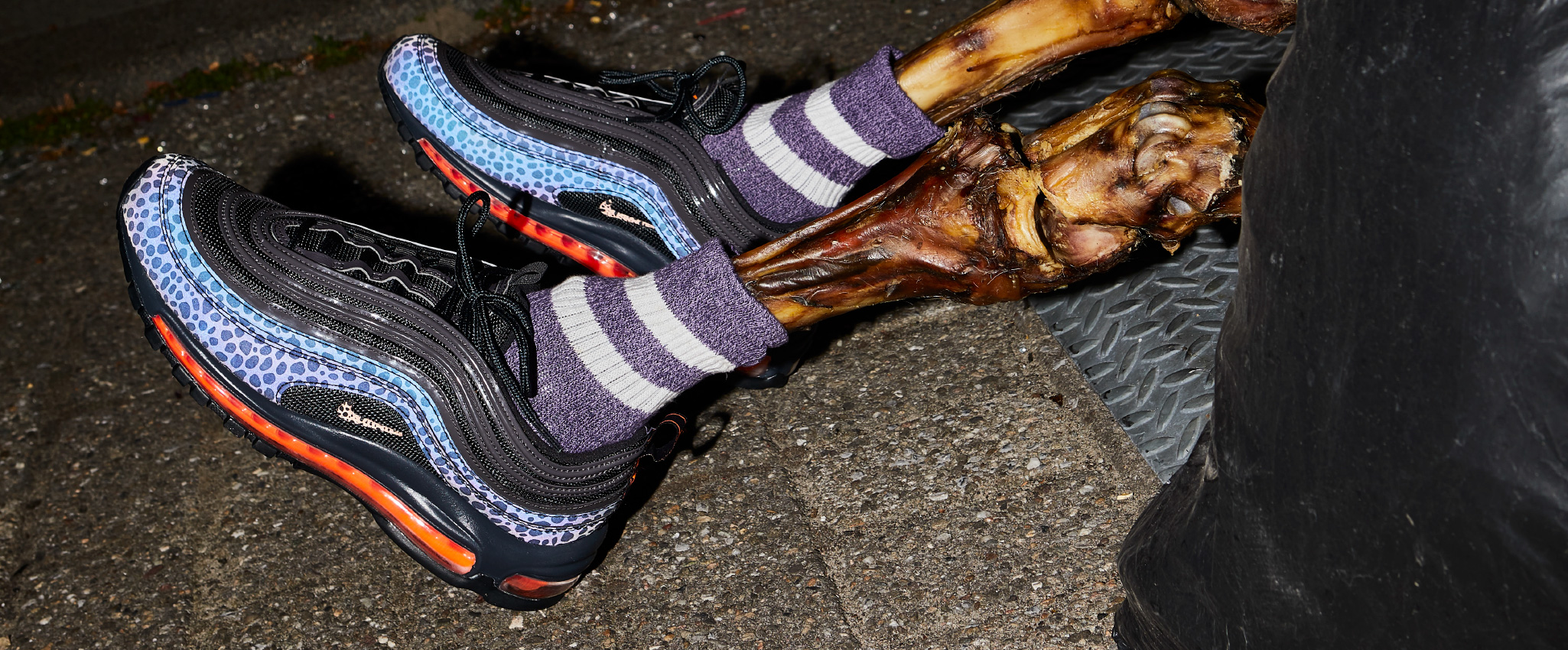 For the Royal sneakers Halloween campaign I dressed the zombie legs with colourful sneakers and matching socks with accessories. The zombie legs were custom built by the team from dog bones from the local pet store.